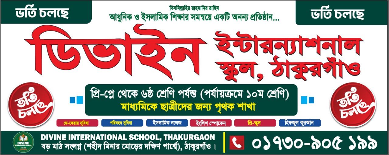 শুরুতেই আমি মহান আল্লাহ্ রাব্বুল আলামীনের প্রশংসা করছি, যিনি আমাদেরকে ধর্মীয় ও সাধারণ শিক্ষার সমন্বয়ে একটি প্রতিষ্ঠান গড়ে তোলার তাওফীক দান করেছেন। ঠাকুরগাঁও শহরে এমন সমন্বিত সিলেবাসের আলোকে ডিভাইন ইন্টারন্যাশনাল স্কুলই প্রথম স্কুল।